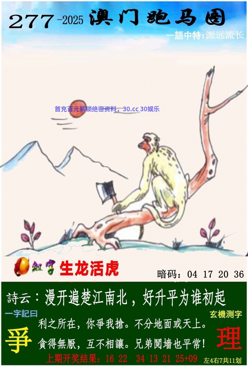 277期:黑白三肖=={白肖+蛇猴羊}开:虎16准 |